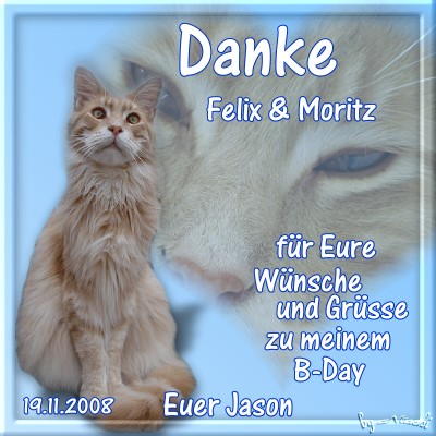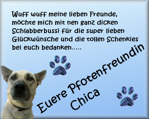 Wir waren auf Chaco`s 21. Burzelparty und haben dieses schöne Danke-Bildchen geschenkt bekommen.
