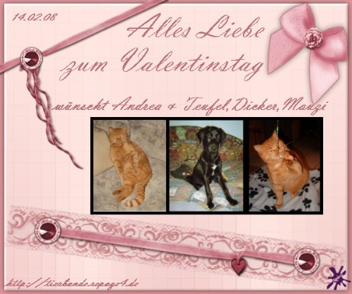 Heute haben wir dieses schöne Valentinstag-Geschenk von Andrea und ihrer Tierbande bekommen, vielen Dank!!!
