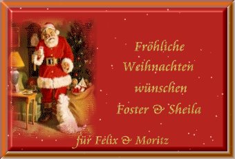Heute haben wir diese lieben Weihnachtsgrüße von Foster. Sheila und Frauchen Elfi bekommen, herzlichen Dank dafür!
