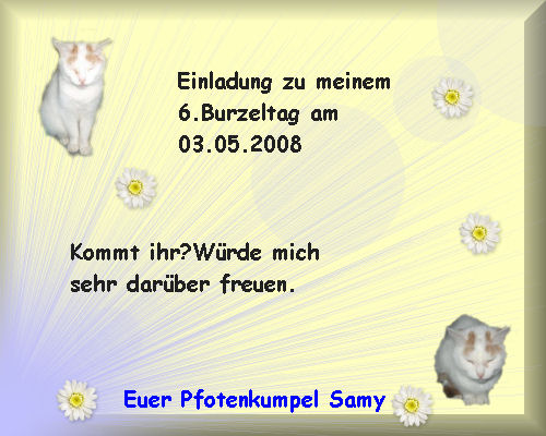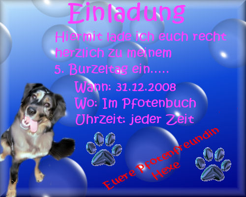 EinladungenMittlerweile haben wir schon viele Freunde im großen weiten Web gefunden und haben auch schon schöne Partys gefeiert. Diese schönen Einladungen haben wir bereits erhalten: