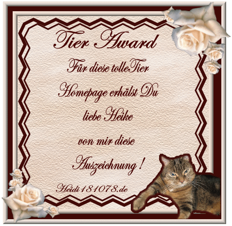 Diesen Tieraward haben wir von Heidi erhalten, vielen Dank dafür!!!